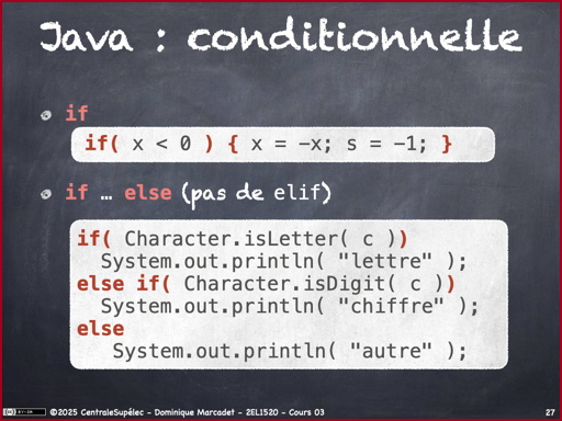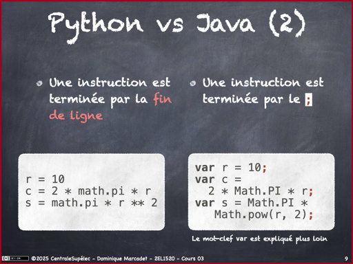 Pour l'explication du ; en Java, voir le transparent suivant.
