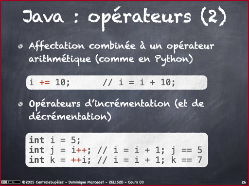 Java comme Python (et comme C) offre la possibilité de combiner un opérateur arithmétique avec l'affectation.