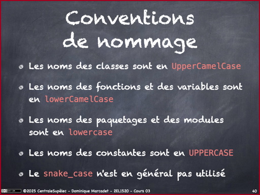 - on peut beaucoup limiter le nombre de commentaires nécessaires en utilisant des noms de variables et de fonctions significatifs.