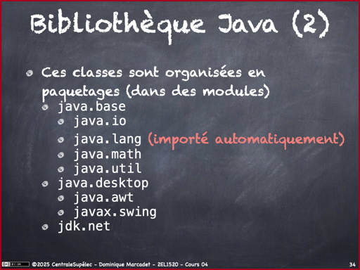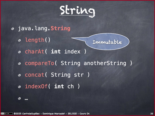 Comme déjà dit, une chaîne de caractères (String, dans le paquetage java.lang dont le contenu est automatiquement importé par le compilateur) est une classe en Java, pas un type primitif.