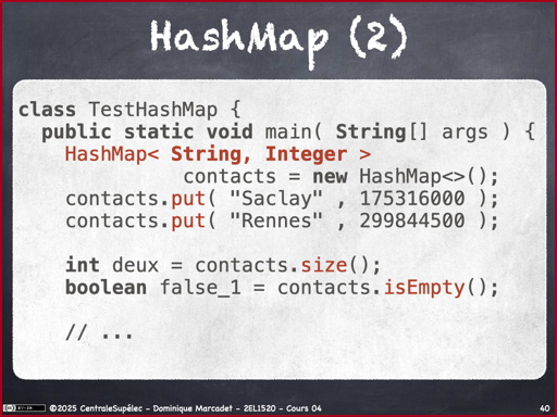 La classe HashMap permet d'avoir des dictionnaires basés sur une table de hachage
