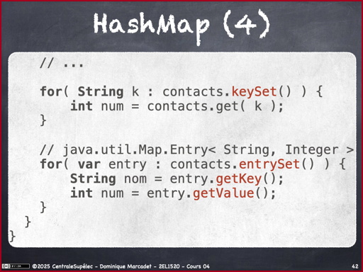 Tous ces conteneurs sont génériques, c'est-à-dire qu'il faut préciser le type des éléments que le conteneur manipule. La généricité sera vue plus en détail dans un cours ultérieur.
