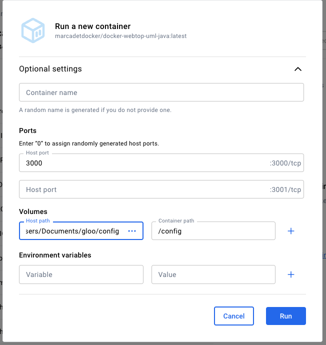 - Indiquer 3000 dans le Host port, /config dans le Container path et via les ... dans le Host path, sélectionner le dossier que vous avez créé.