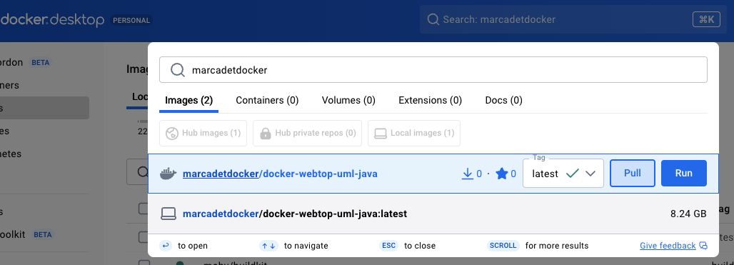 - Cliquer sur le bouton Pull pour télécharger l'image (il vous faudra certainement un certain temps vu sa taille, mais cette opération n'est à faire qu'une fois).