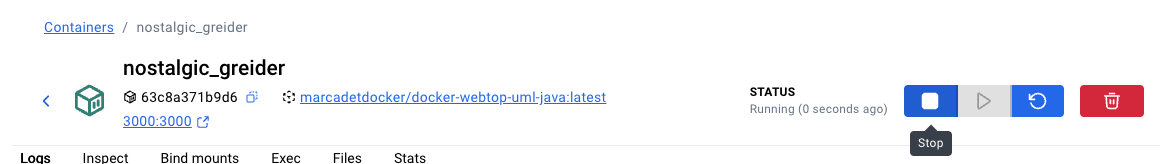 - Quand vous avez fini de travailler, fermer la fenêtre du navigateur et cliquer sur le bouton Stop dans l'onglet Containers.