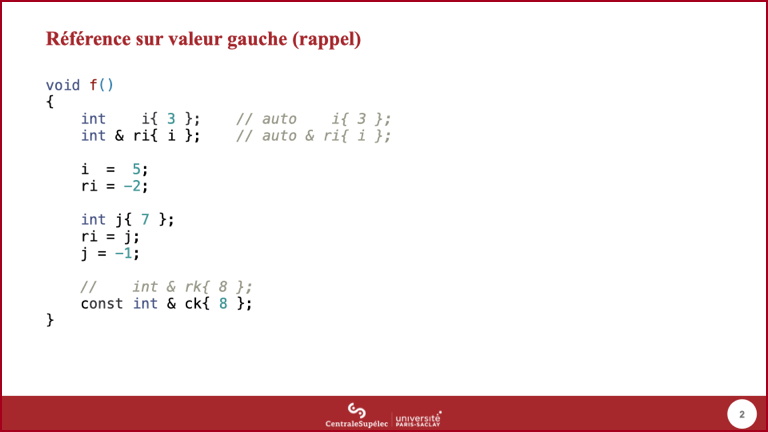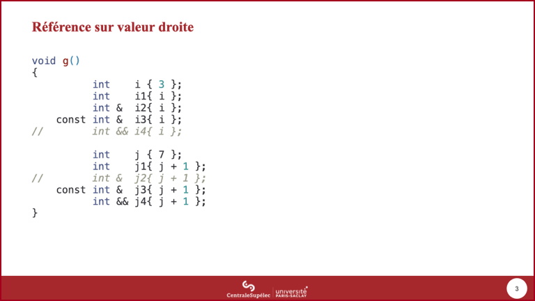 - Les références sur valeur droite peuvent être liées à des données temporaires qui pourront être modifiées (pas de
