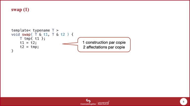 swapde manière générique, on s'aperçoit qu'il se traduit pas 3 copies. - Et les données sources de ces 3 copies sont détruites juste après, soit par affectation dans l'instruction suivante, soit par destruction de la variable locale en sortie de bloc.