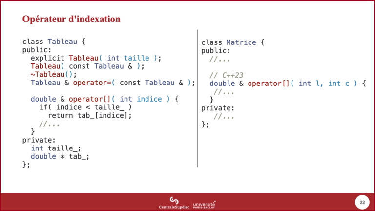 - L'opérateur d'indexation est bien sûr utilisé par les conteneurs de la catégorie des tableaux dans la STL, mais aussi par les dictionnaires.