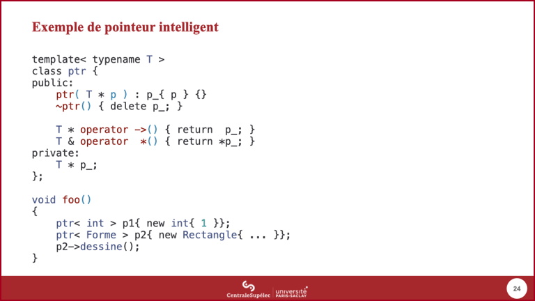 - Cet exemple basique montre à quoi peut servir un pointeur intelligent pour éviter des fuites de mémoire.