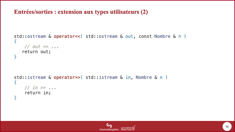 >>est une instance deNombrequi va être modifiée par l'opération de lecture : là aussi, passage par référence sur valeur gauche non constante. - Pour pouvoir chaîner les opérations de lecture ou d'affichage, notre surcharge de
