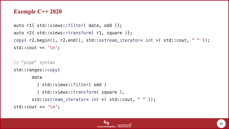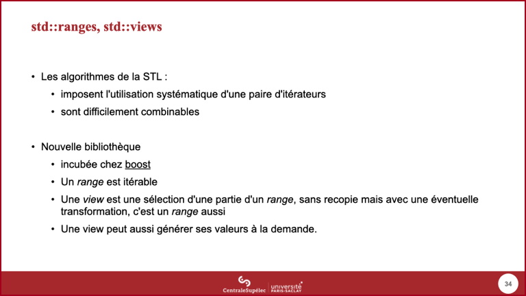 - C++ 2020 a introduit le concept de range qui généralise ce qui est itérable :